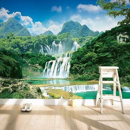 Murale Carta Da Parati Murali La Natura Del Paesaggio Di Montagna Verde Cascata Personalizzare 4d Wallpaper Parete Decorazione Hd Stampare Poster Per Soggiorno Divano Decor Sfondo Grande Murale Di Set Amazon It Casa E