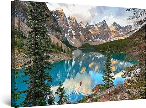 Startonight Quadro Su Tela Chiaro Lago Di Montagna Quadri Moderni Paesaggio Stampe Camere Da Letto 60 X 90 Cm Amazon It Casa E Cucina