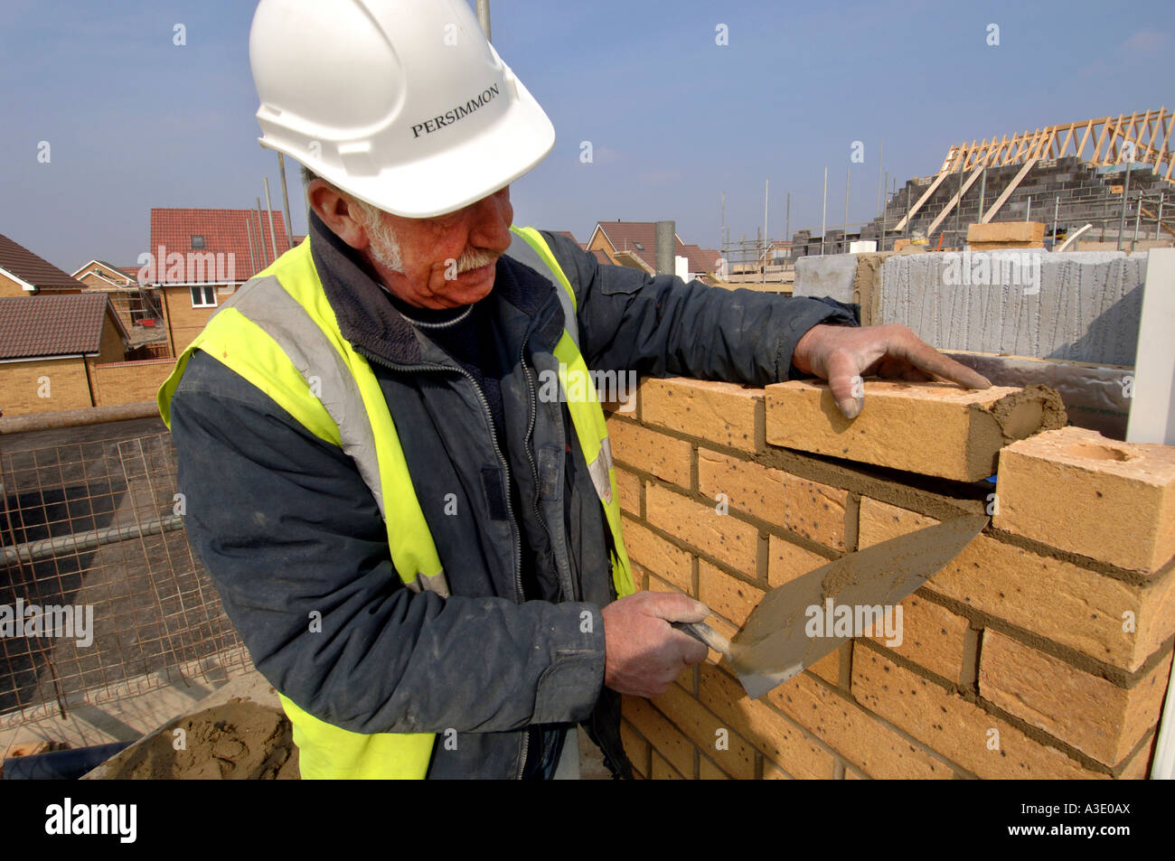 Un Veterano Muratore Al Lavoro Su Un Sito Di Costruzione Foto Stock Alamy