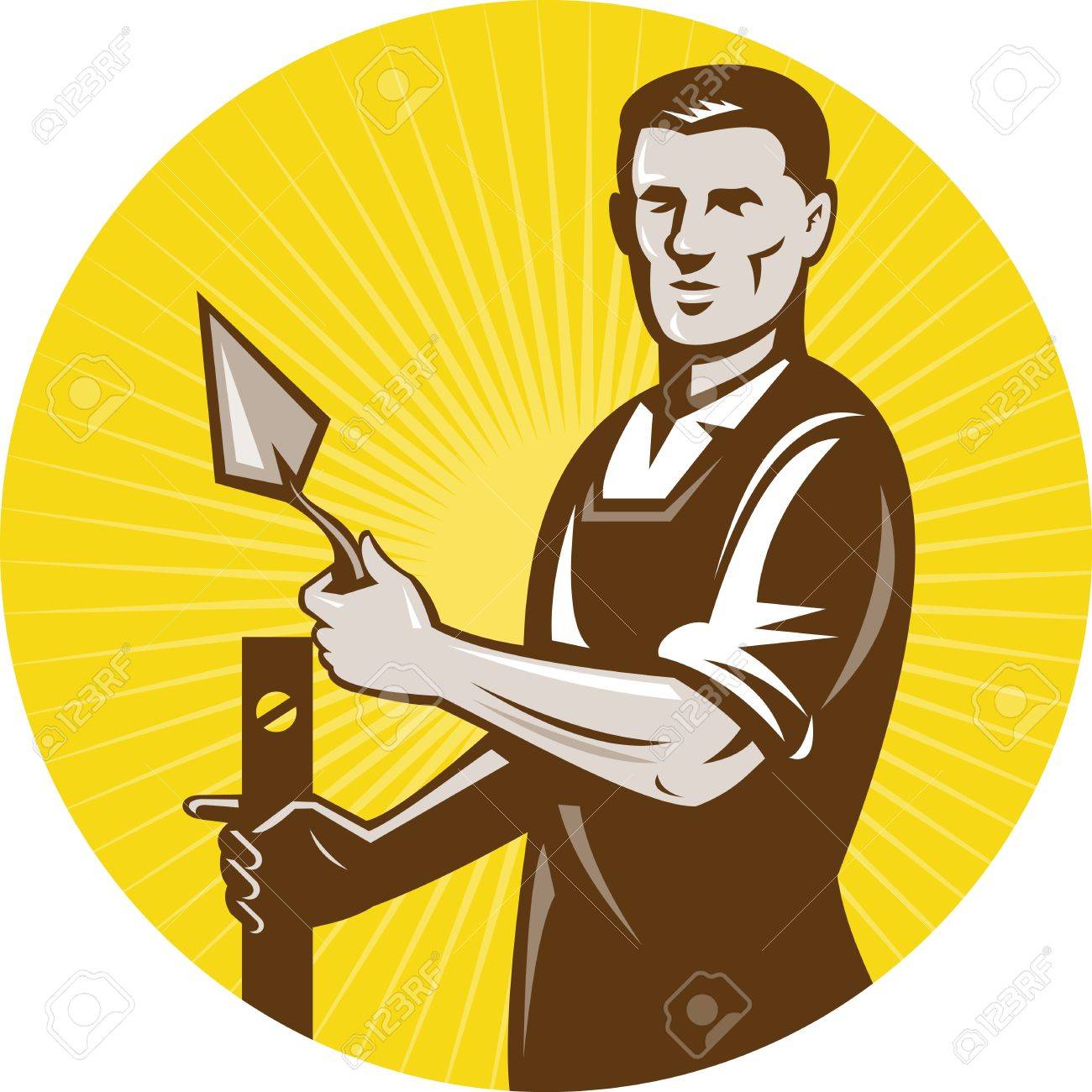 Immagini Stock Illustrazione Di Muratore Muratore Intonacatore Operaio Edile Al Lavoro Fatto In Stile Retro Image 9581494