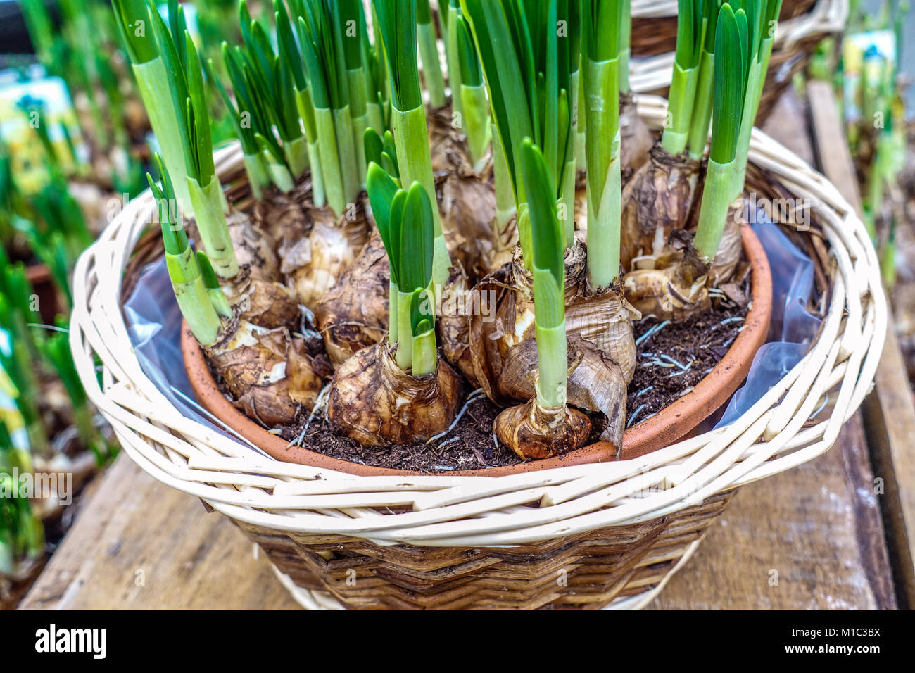 Il Germogliare Bulbi Di Narcisi In Fiore Pot Foto Stock Alamy