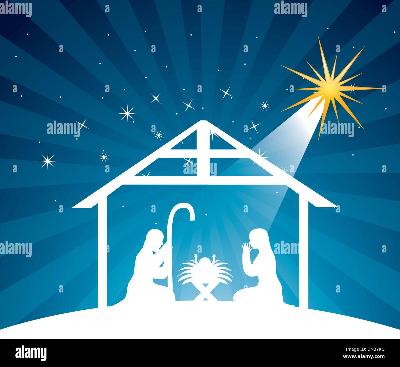 Scena Di Nativita Del Briciolo Delle Cartoline Di Natale Su Fondo Blu Illustrazione Di Stock Illustrazione Di Celebrazione Jesus 117926444