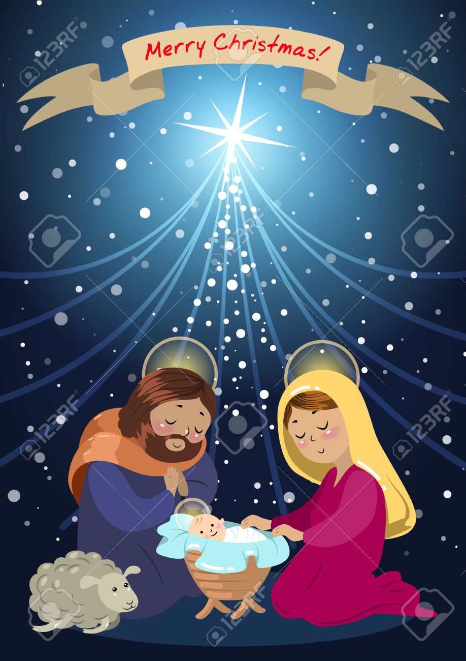 Scena Di Nativita Di Natale Con La Famiglia Santa Bambino Gesu Di Joseph Maria E Pecore Illustrazione Di Stock Illustrazione Di Christianity Jesus 117926562