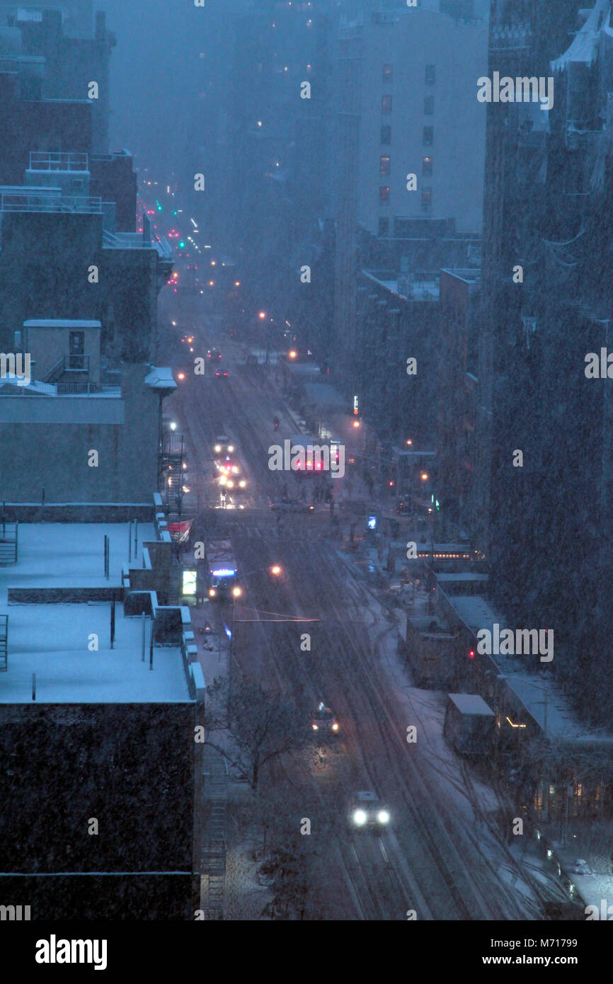 New York Stati Uniti D America Marzo 7 Neve Caduta Sul West 23rd Street Nella Sezione Di Chelsea Di Manhattan Come Una Tempesta Di Neve Ha Colpito Oggi Previsto Con Accumuli Di 6 10