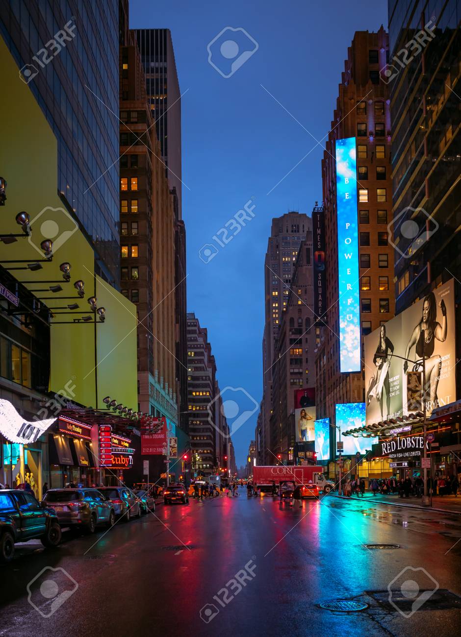 Immagini Stock New York Usa 30 Aprile 2016 Vie Di New York Alla Sera Luci E Ombre Di New York Luci Della Pubblicita Sulle Strade Di Manhattan Durante La Notte Image 67636889