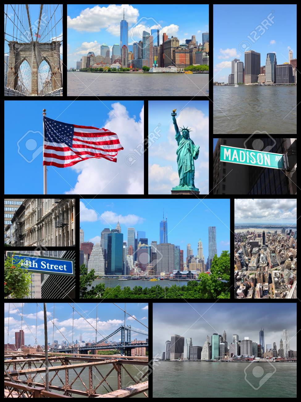 Immagini Stock Di New York Collage Di Viaggio Foto Insieme Con La Statua Della Liberta Manhattan E Brooklyn Bridge Image 58968613