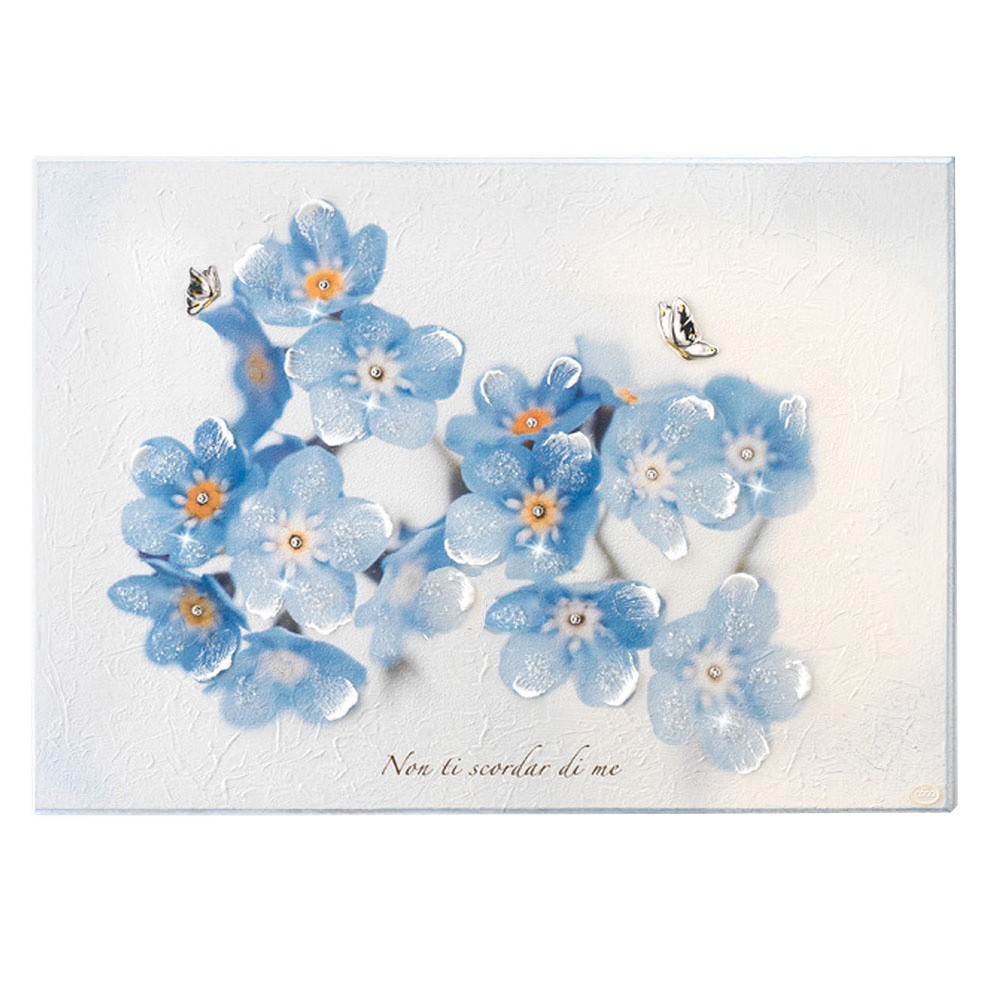 Quadro Fiori Non Ti Scordar Di Me Argento Swarovski Legno Acca Qd 41 F