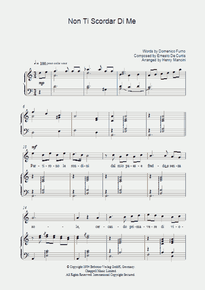 Non Ti Scordar Di Me For Solo Medium Low Voice Music Sheet Download Topmusicsheet Com