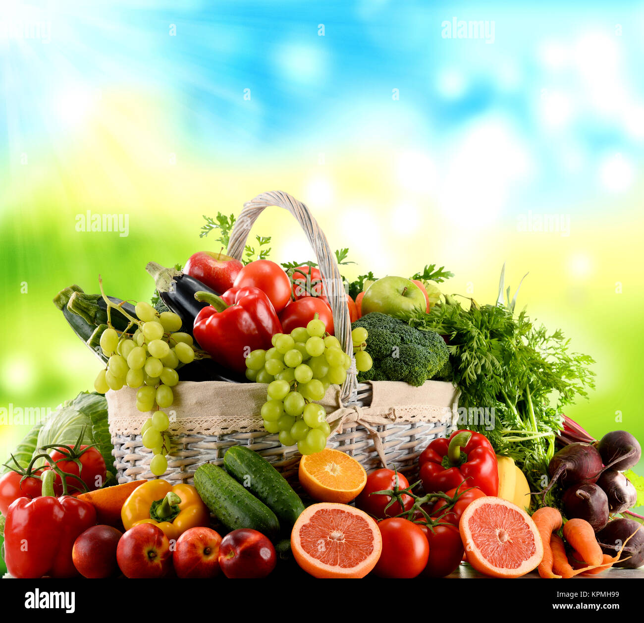 Varieta Di Ortaggi E Frutta Nel Cesto Di Vimini Foto Stock Alamy