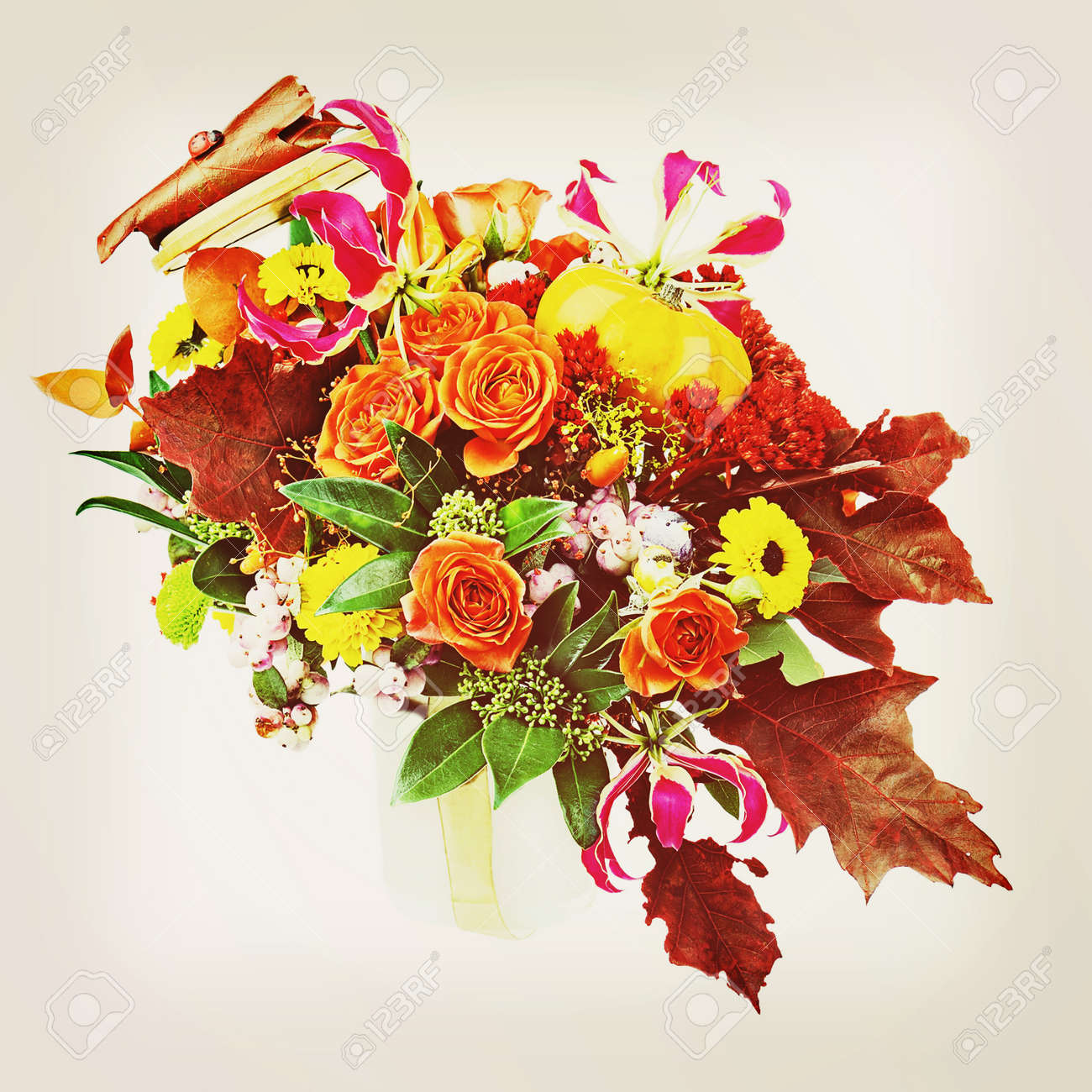 Immagini Stock Disposizione Autunno Di Fiori Ortaggi E Frutta Con Effetto Filtro Retro Image 27083686