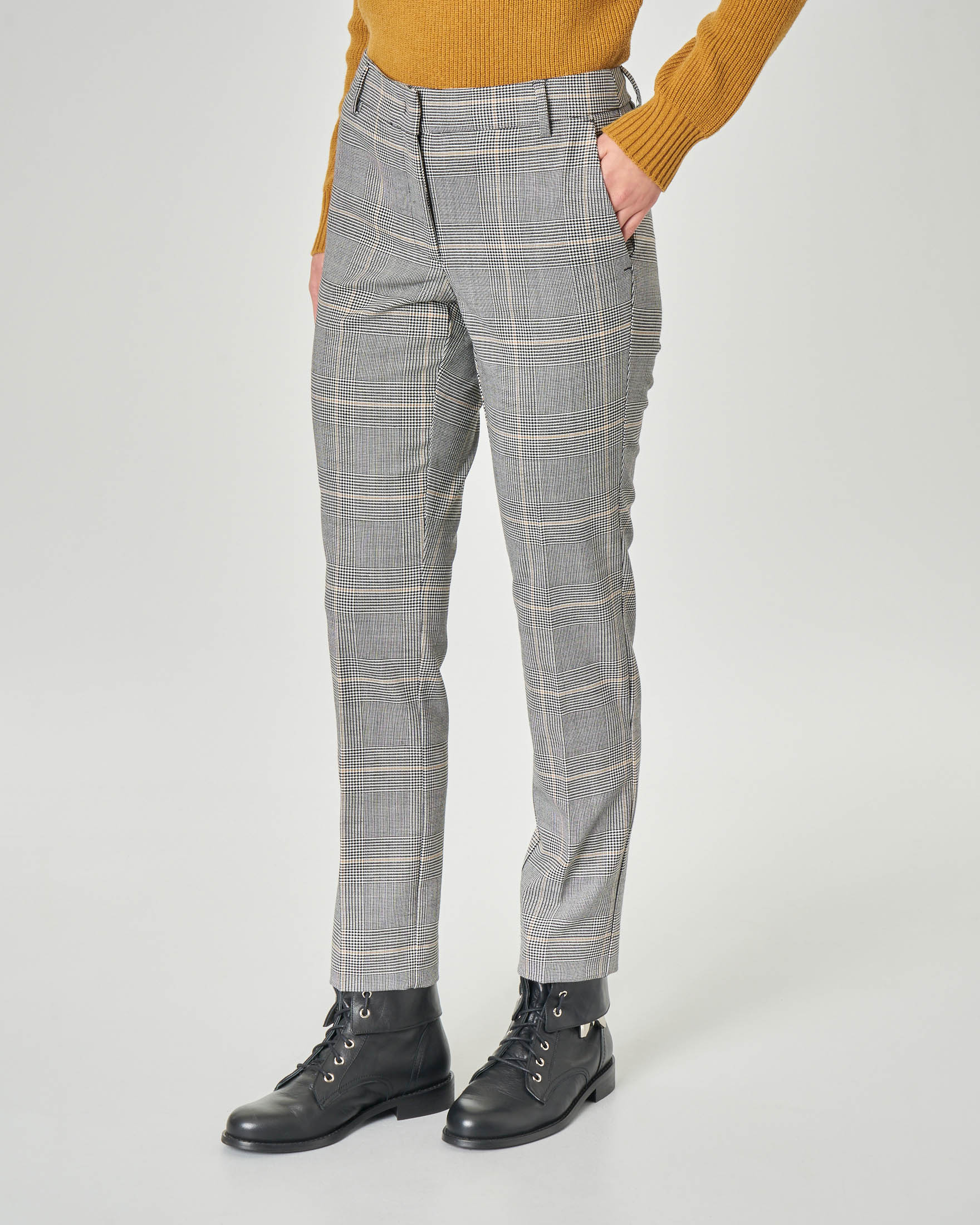 Pantaloni Lunghezza Alla Caviglia A Fantasia Principe Di Galles Bianco E Nero Con Righina Cammello Pellizzari E Commerce