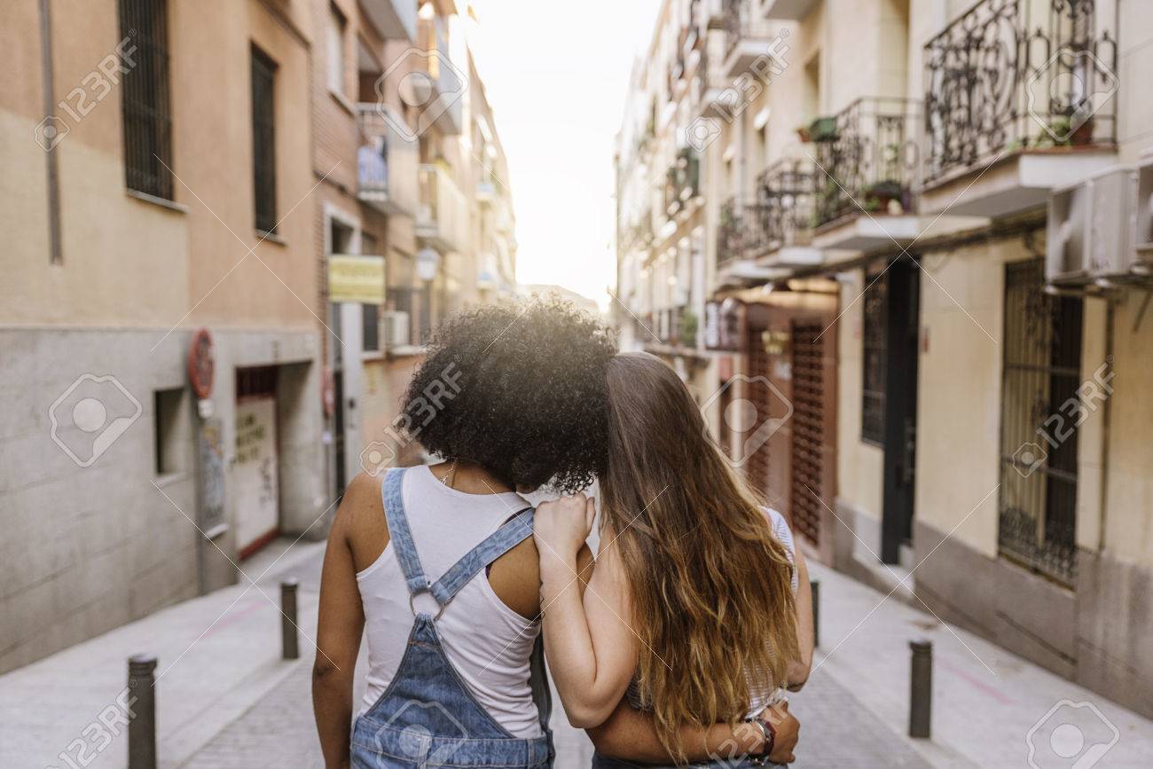 Immagini Stock Vista Posteriore Di Giovani Donne Che Si Diverte In Strada Concetto Di Gioventu Image 83728972