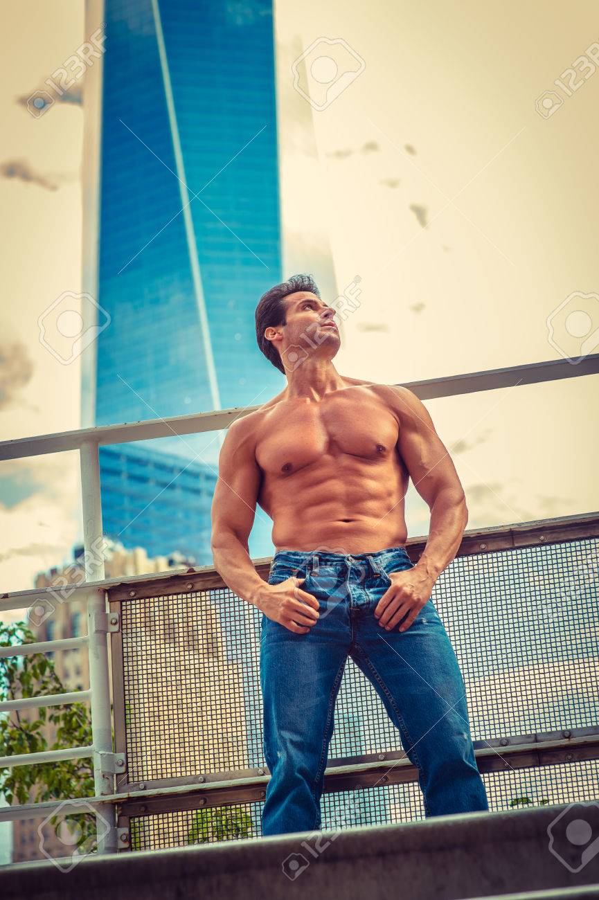 Immagini Stock Uomo Muscoloso Un Ragazzo Bello Sexy Di Mezza Eta Mezzo Nudo E In Piedi Nella Parte Anteriore Della Costruzione Della Torre Guardando Con Fiducia In Avanti Image 80351419