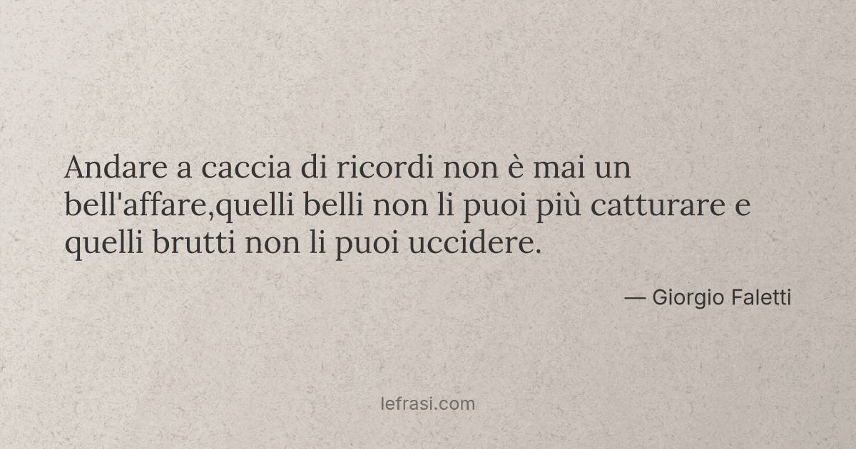 Andare A Caccia Di Ricordi Non E Un Bell Affare Quelli Belli Non Li Puoi Catturare E Quelli Brutti Non Li Puoi Uccidere Giorgio Faletti Il Tuo Counselor
