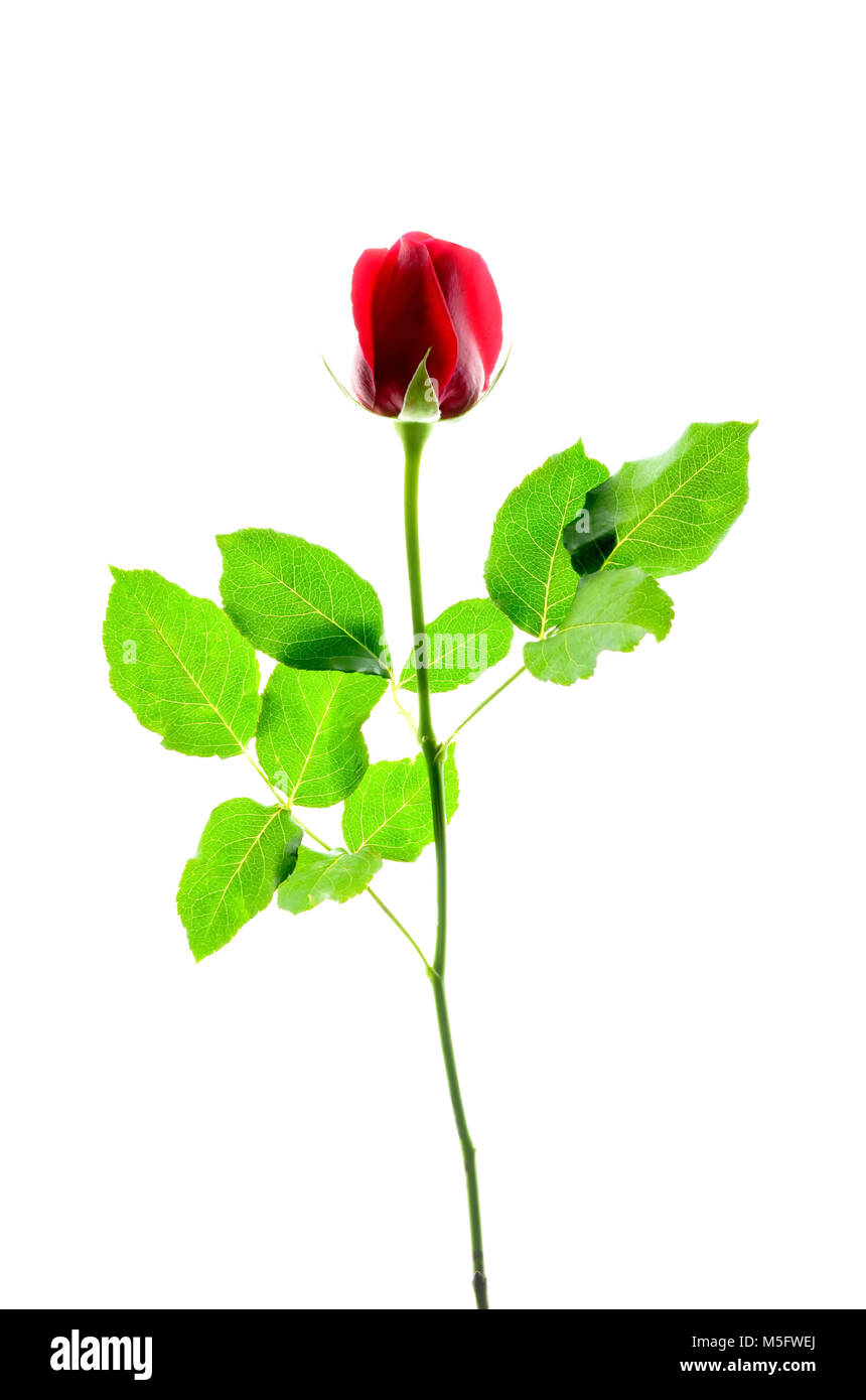 Isolare La Bella Rosa Rossa Con Foglie Verdi Una Silhouette Close Up Foto Immagine Della Bella Rosa Rossa Fiore Di Giorno Di San Valentino Con Verde Foglie Di Rose O Foto Stock