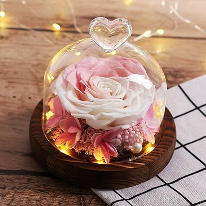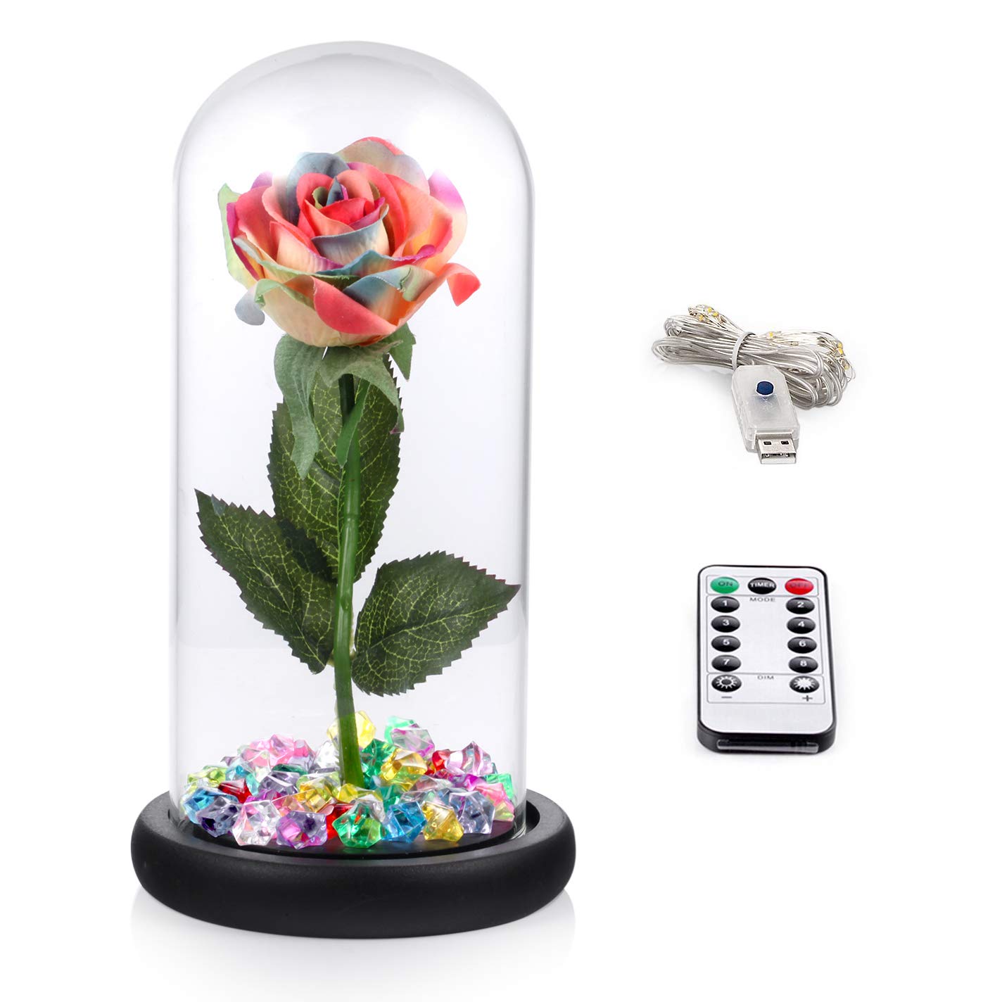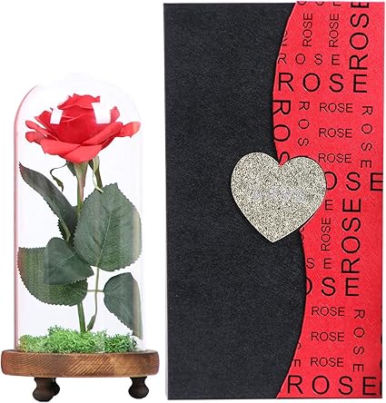 Hot Bella E La Bestia Rosa Rossa Con La Luce Su Una Cupola Di Vetro Su Una Base Di Legno Per I Regali Di San Valentino Festa Di Nozze Di Natale Amazon It