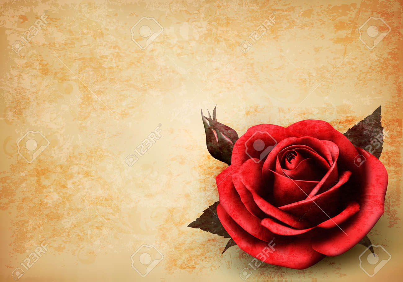 Vettoriale Sfondo Retro Con Bella Rosa Rossa Con Gemme Illustrazione Di Vettore Image 19240181
