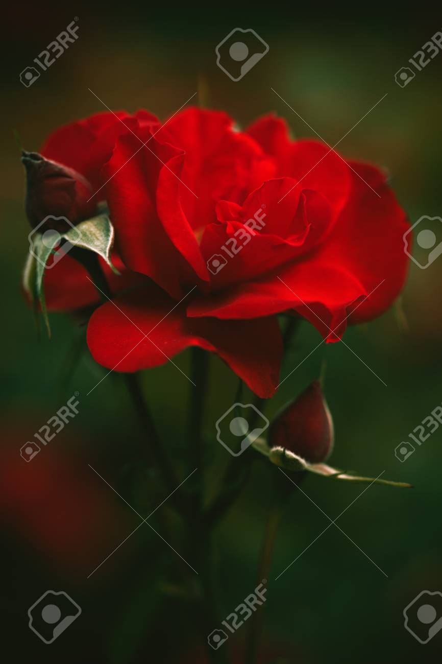 Immagini Stock Bellissimo Giardino Rosa Rossa Sfondo Primo Piano Profondita Di Campo Image 58009977