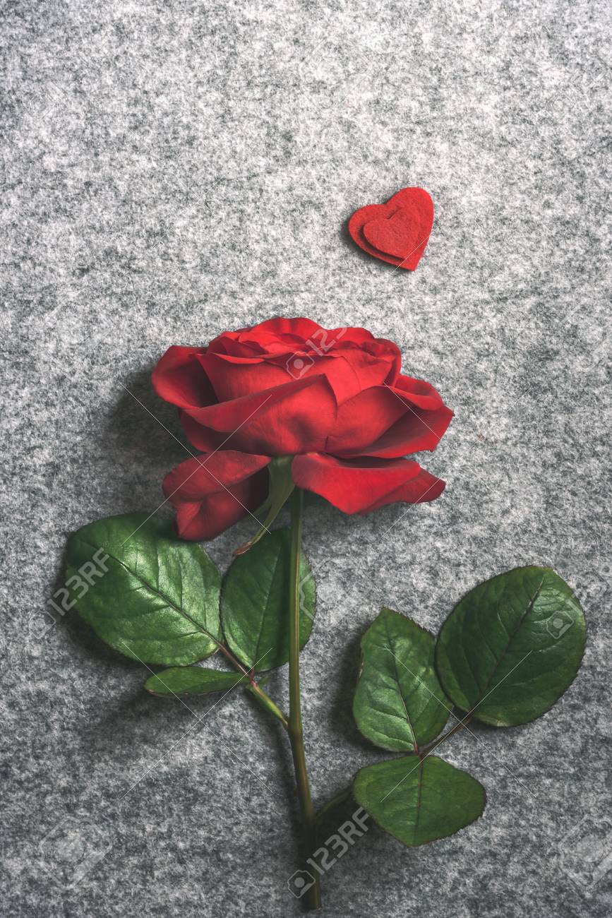 Immagini Stock Immagine Romantica In Stile Retro Con Una Bellissima Rosa Rossa E Due Cuori Di Tessuto Rosso Uno Sopra L Altro Su Uno Sfondo Di Tessuto Grigio Vintage Image 94016777