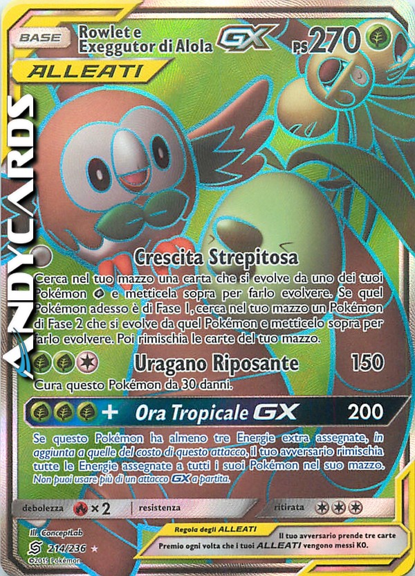 214 236 Rowlet E Exeggutor Di Alola Gx Alleati Full Art V 1 It Mint Federicstore