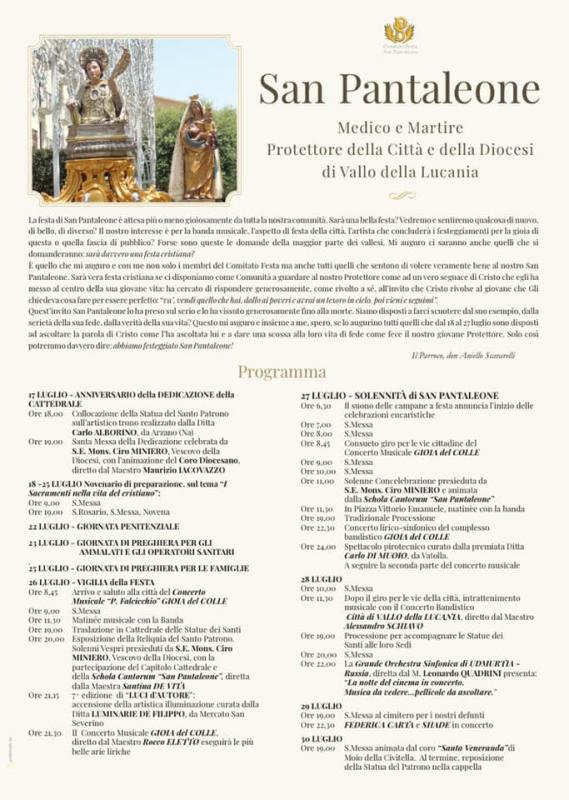 Vallo Della Lucania Festeggiamenti In Onore Di San Pantaleone Medico E Martire Cilento Notizie