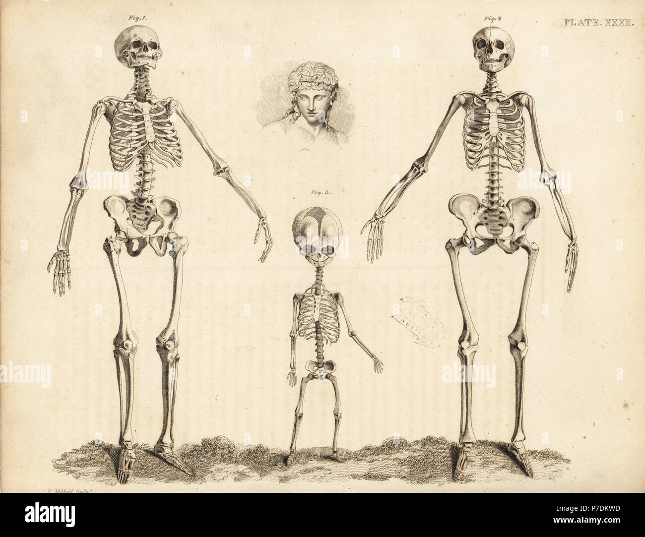Confronto Di Scheletri Del Maschio Umano Femmina E Feto Alla Nascita Incisione Su Rame Di Edward