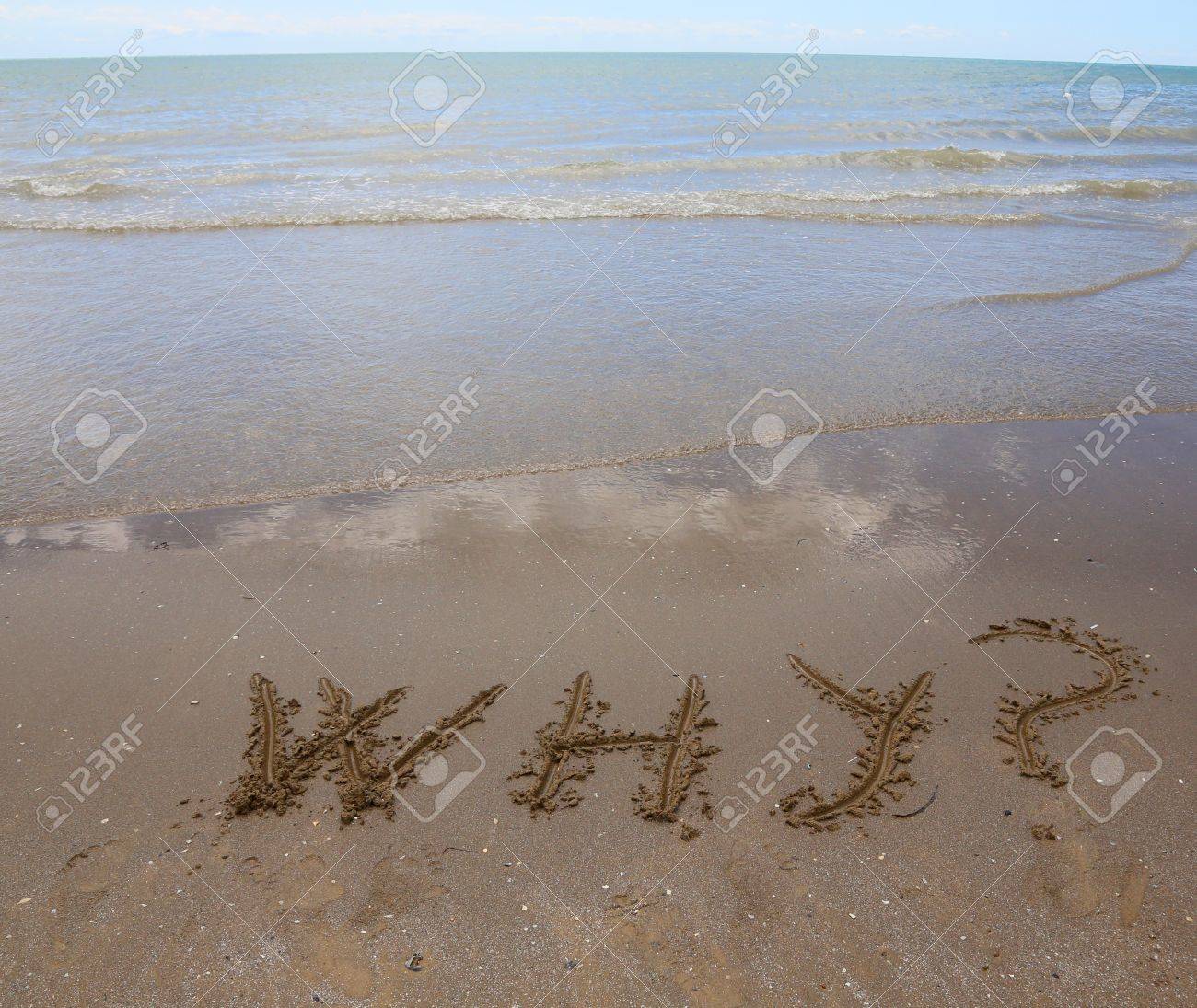 Immagini Stock Perche Grande Scritta Sulla Sabbia Image 62539779