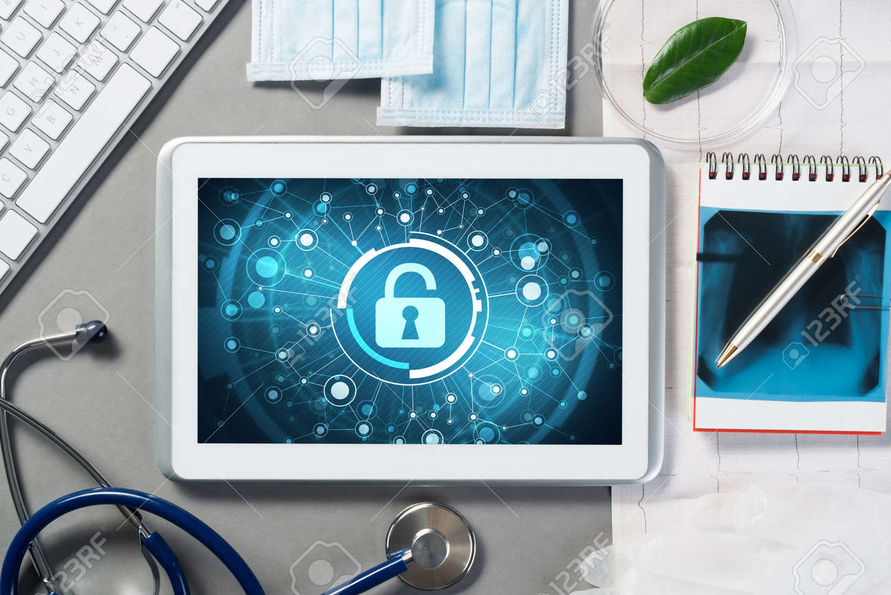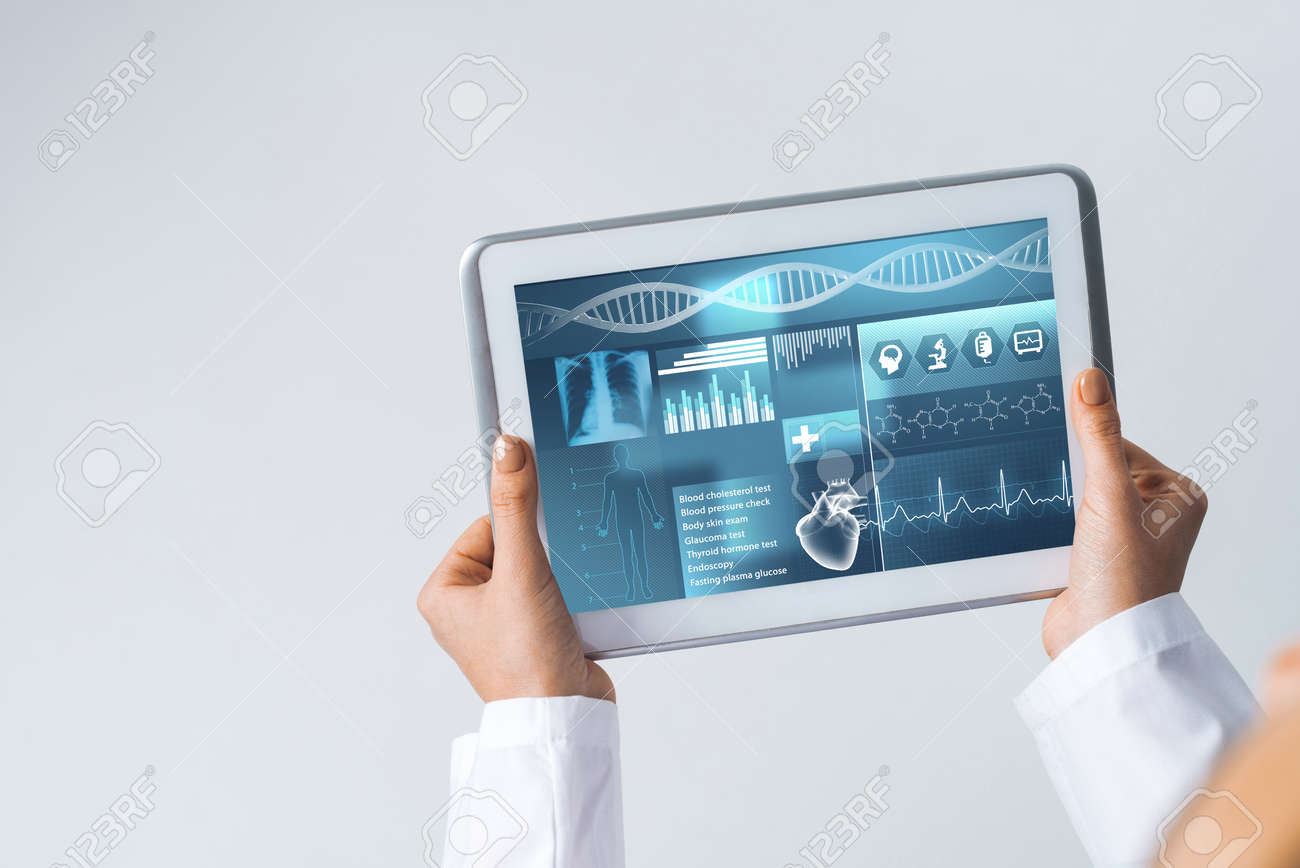 Immagini Stock Dispositivo Di Tablet Pc Con Schermo Di Interfaccia Medica Nelle Mani Del Medico Image 81769926