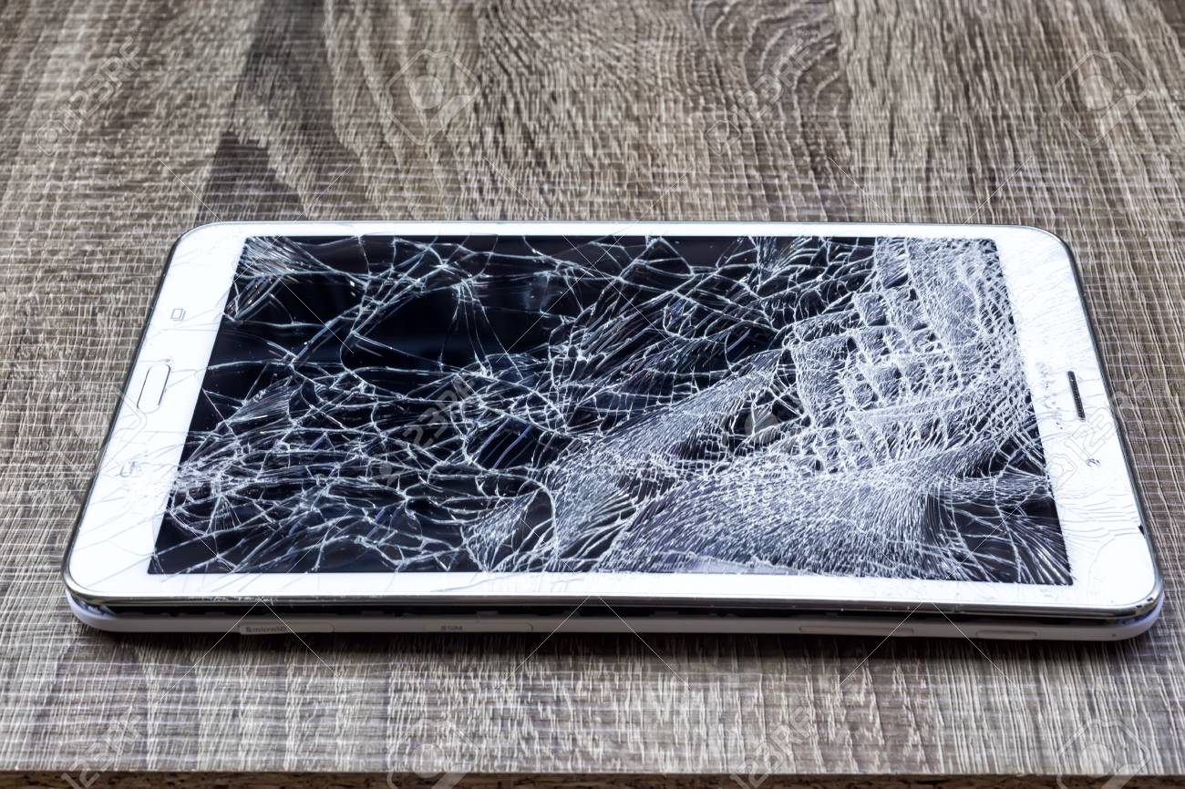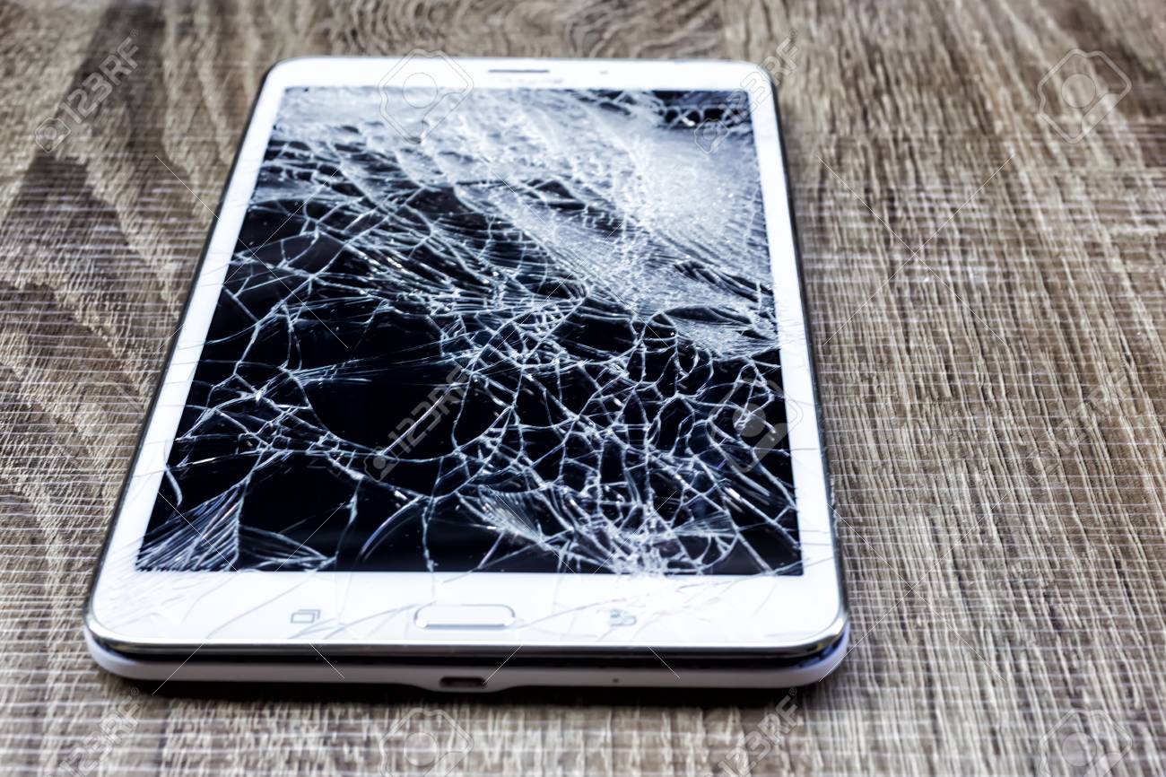 Immagini Stock Vetro Rotto Di Tablet Sul Legno Del Grunge Messa A Fuoco Selettiva Bassa Profondita Di Campo Image 53135304