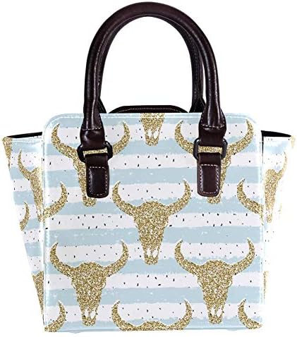 Borsa A Tracolla Da Donna In Pelle Con Teschi Di Mucca Glitter Oro Su Sfondo A