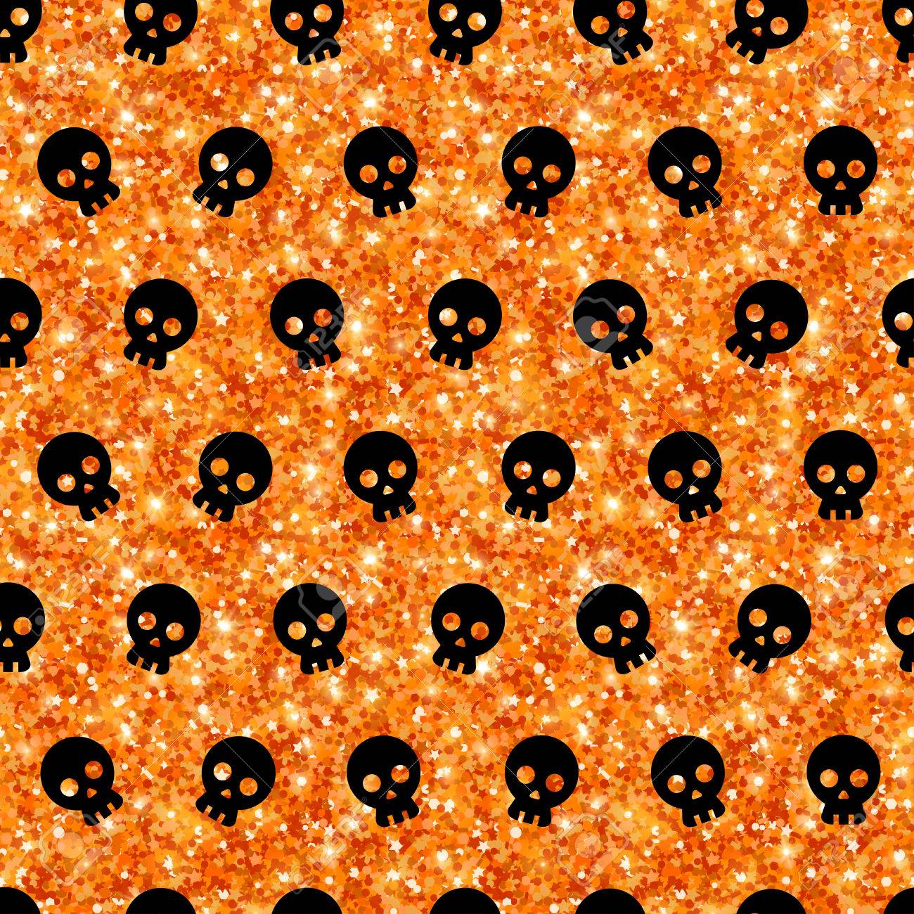 Vettoriale Modello Senza Soluzione Di Continuita Di Halloween Con I Teschi Neri Su Sfondo Arancione Brillante Illustrazione Vettoriale Struttura Di Glitter D Oro Rivestimenti Dei Sequins Image 61928629