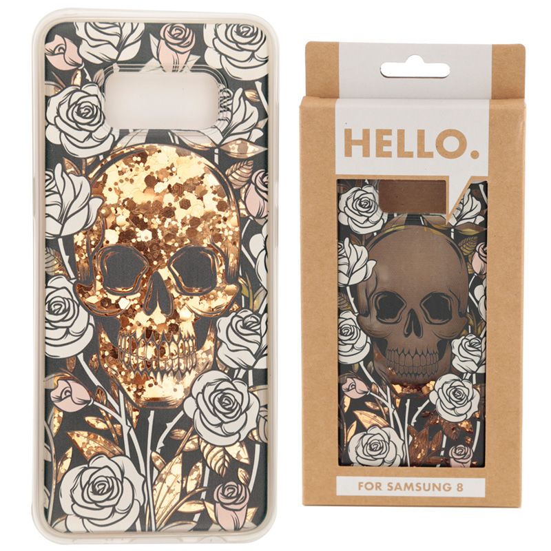 Cover Cellulare Con Glitter Teschi Con Rose Per Samsung 8