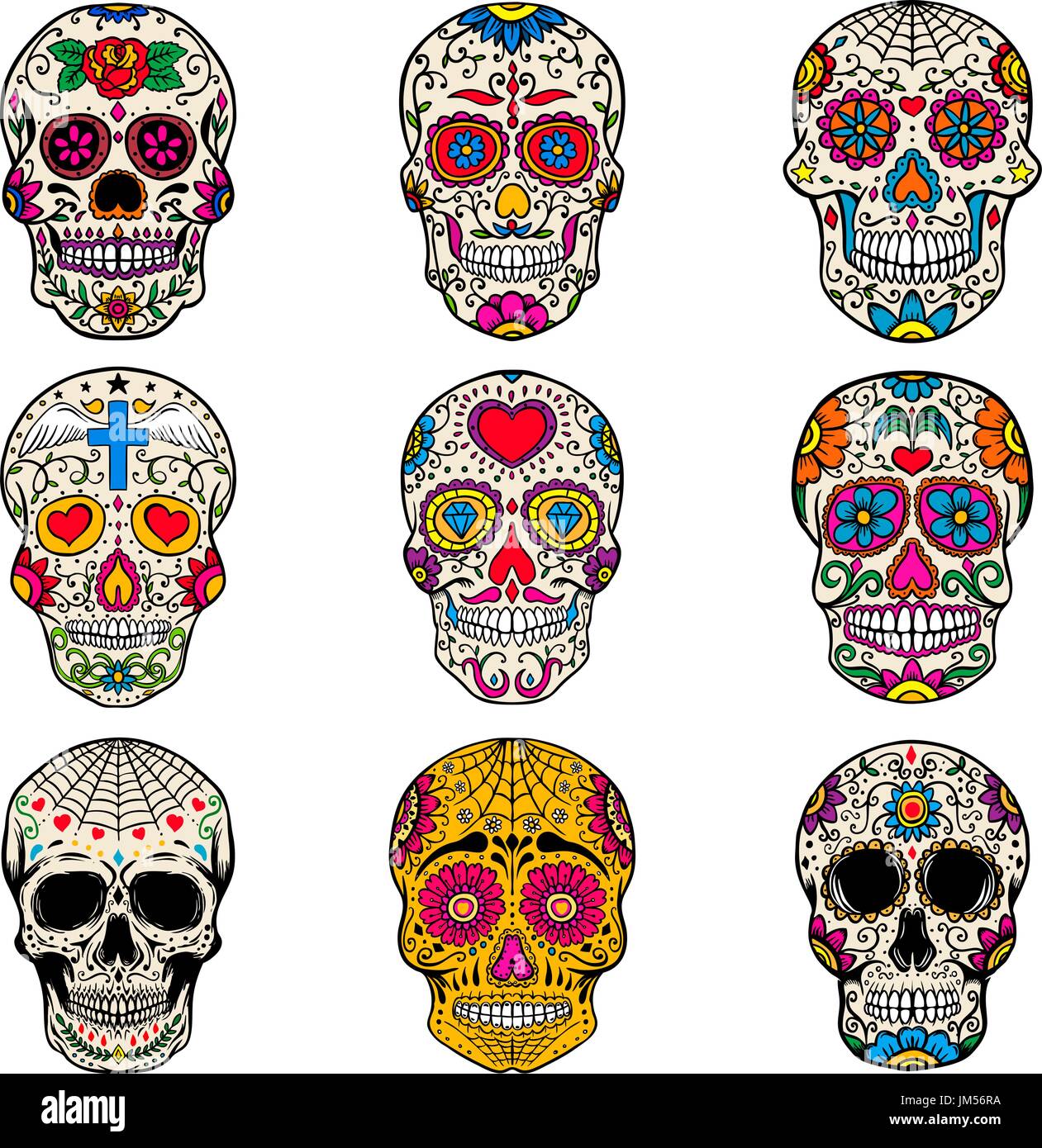 Set Di Teschi Di Zucchero Isolato Su Sfondo Bianco Il Giorno Dei Morti Il Dia De Los Muertos Illustrazione Vettoriale Immagine E Vettoriale Alamy