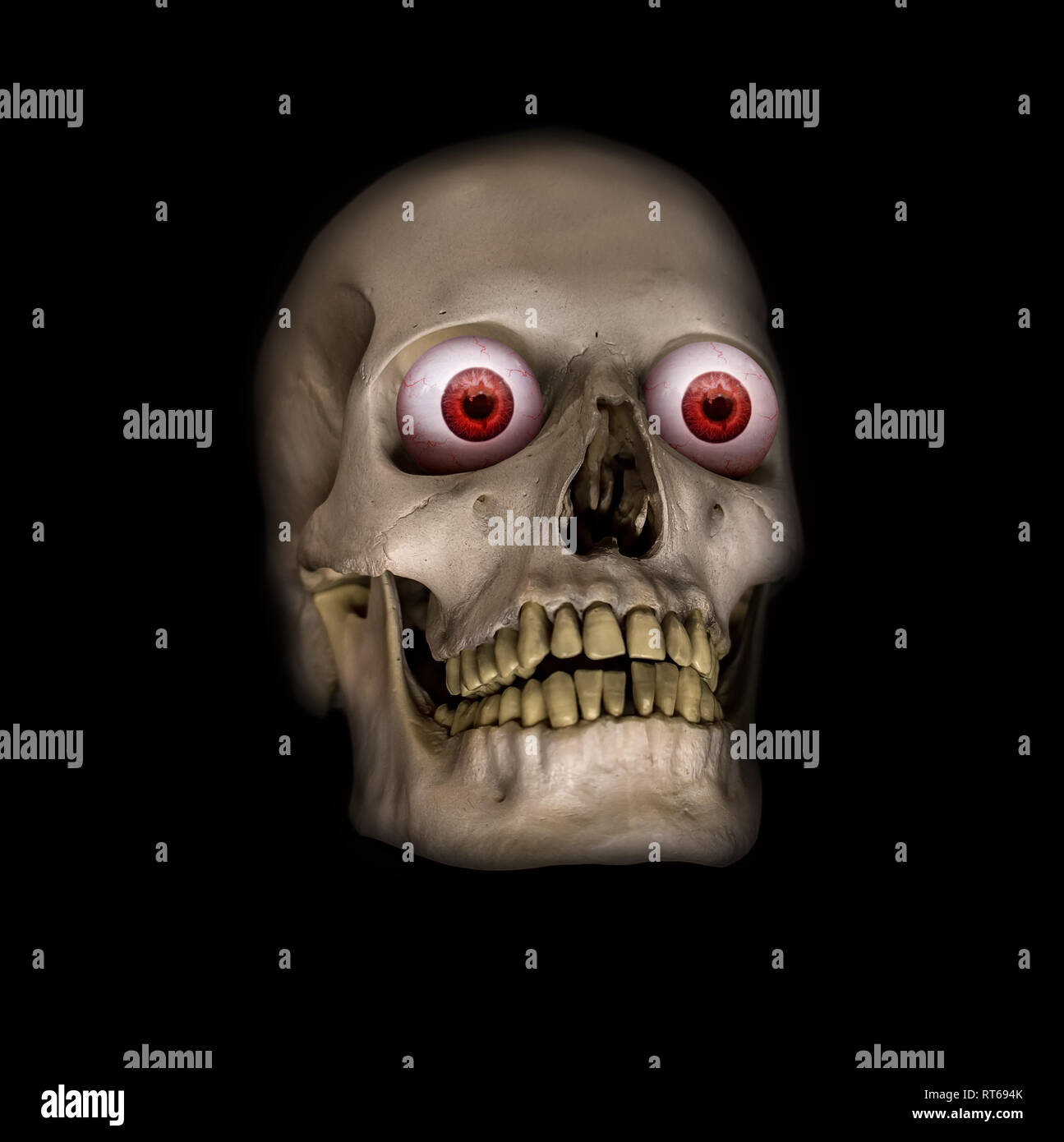 Un Pauroso Teschi Umani Con Gli Occhi Rossi Su Sfondo Nero Foto Stock Alamy