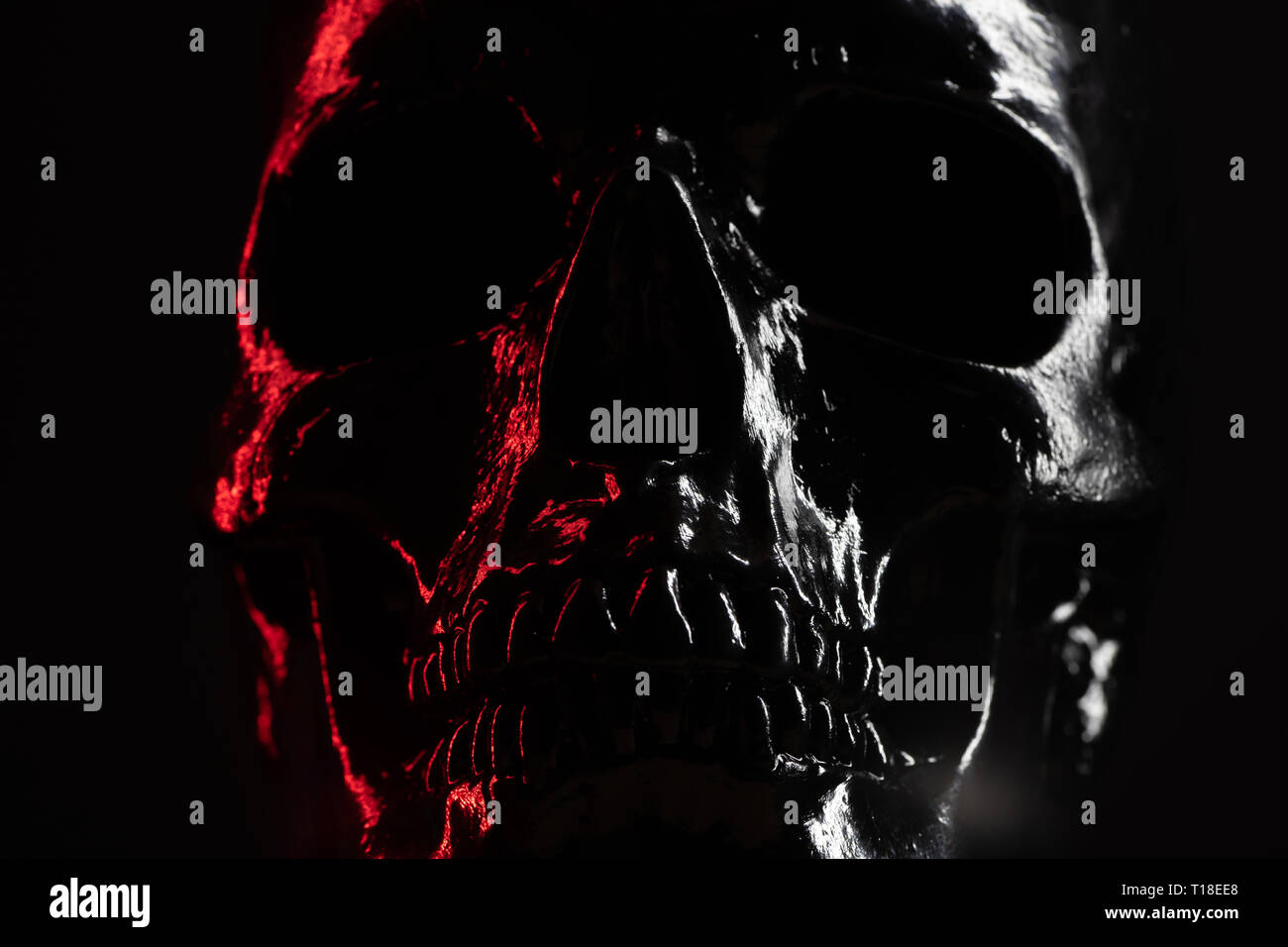 Modello Di Teschio Umano Dipinto Con Nero Su Sfondo Scuro Con Illuminazione Concetto Di Paura E Di Orrore Festa Di Halloween Spazio Di Copia Foto Stock Alamy