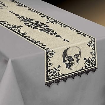 Amakando Runner Da Tavolo Nobiliare Con Teschio Nero Beige 35x180cm Paurosa Decorazione Da Tavolo Vanitas Cimitero Una Meraviglia Per Feste Di Paura Halloween Amazon It Giochi E Giocattoli