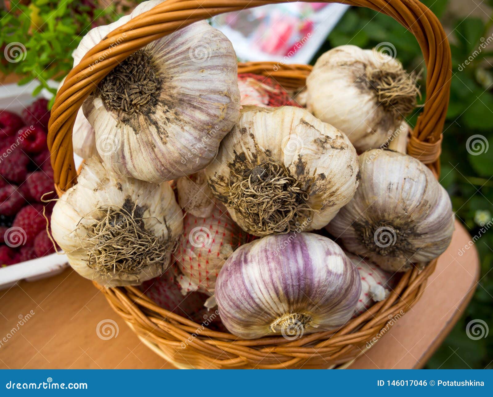 Le Grandi Teste Di Aglio Sono In Un Canestro Di Vimini Fotografia Stock Immagine Di Grandi Aglio 146017046