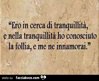 Ero In Cerca Di Tranquillita E Nella Tranquillita Ho Conosciuto La Follia E Me Ne Innamorai Facciabuco Com