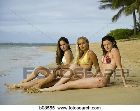 Ritratto Di Tre Ragazze Adolescenti Sedendo Spiaggia Archivio Fotografico B08555 Fotosearch