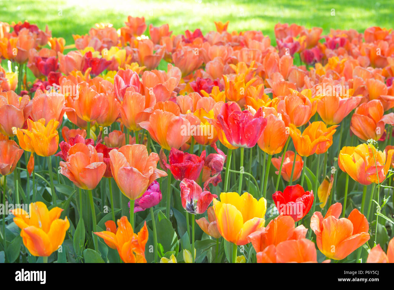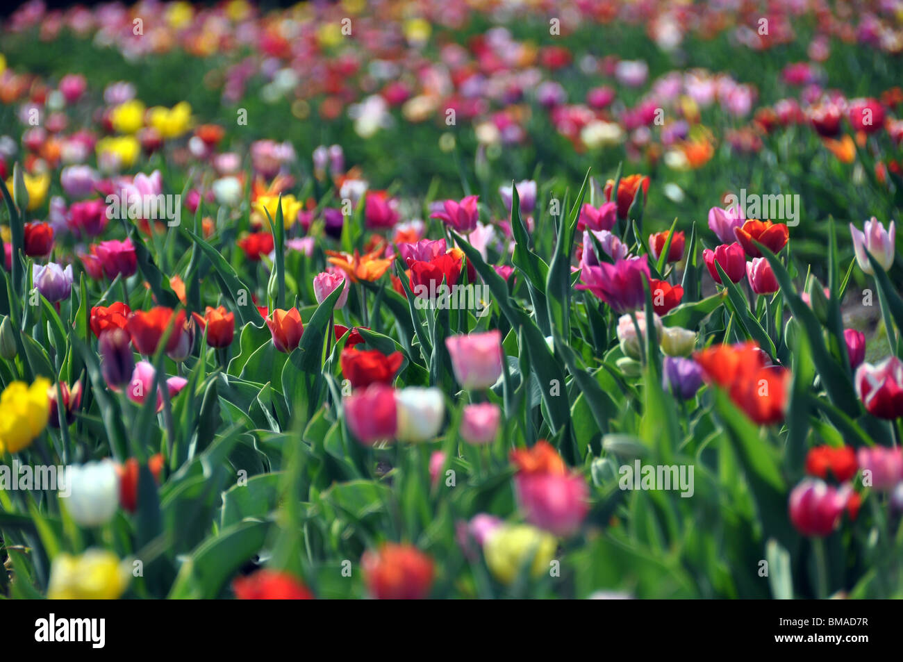 Campo Di Tulipani Colorati In Vari Colori Rosso Giallo Viola L Arancione Foto Stock Alamy