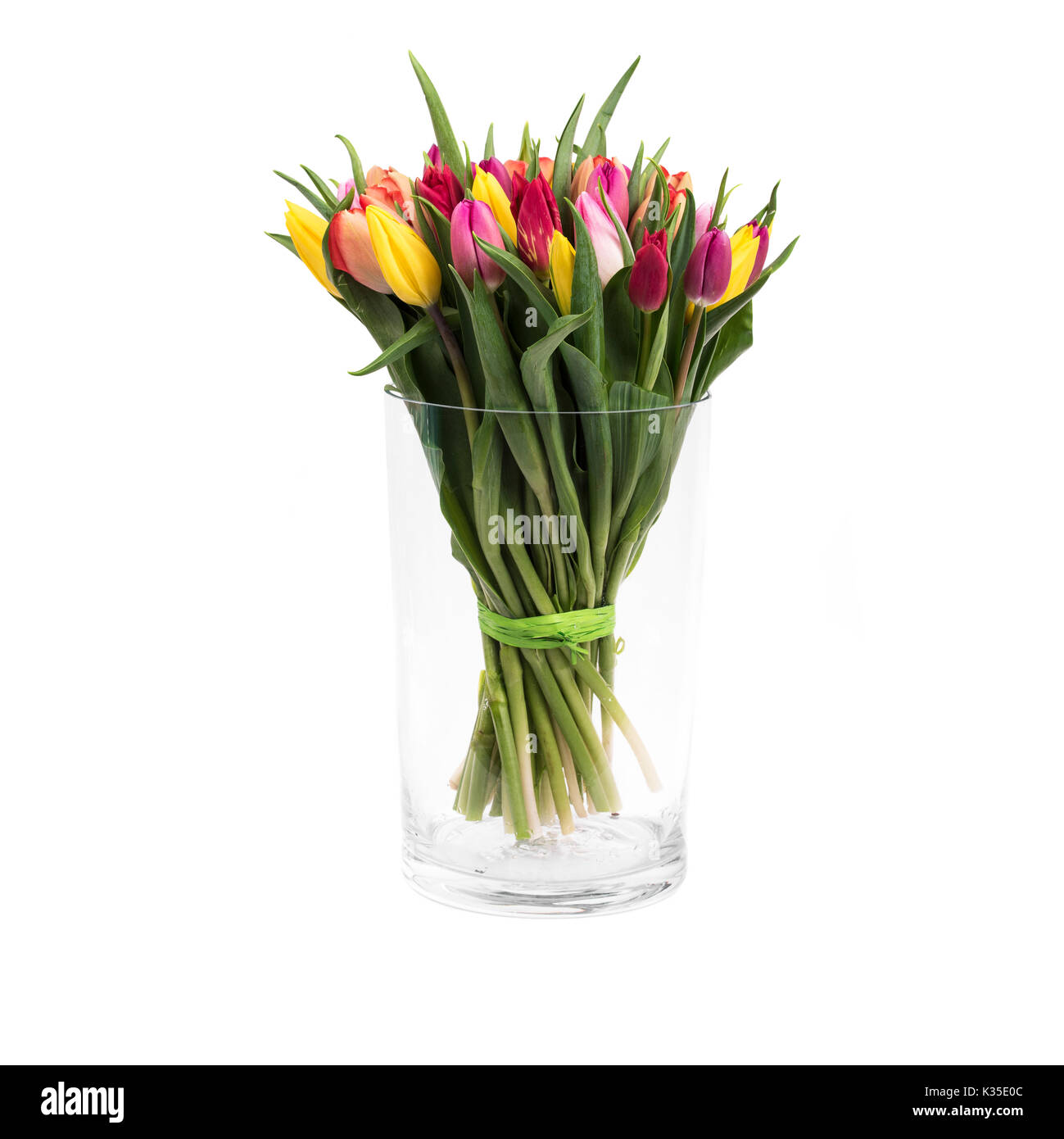 Vaso Di Vetro Con Grandi Bouquet Di Tulipani Colorati Foto Stock Alamy