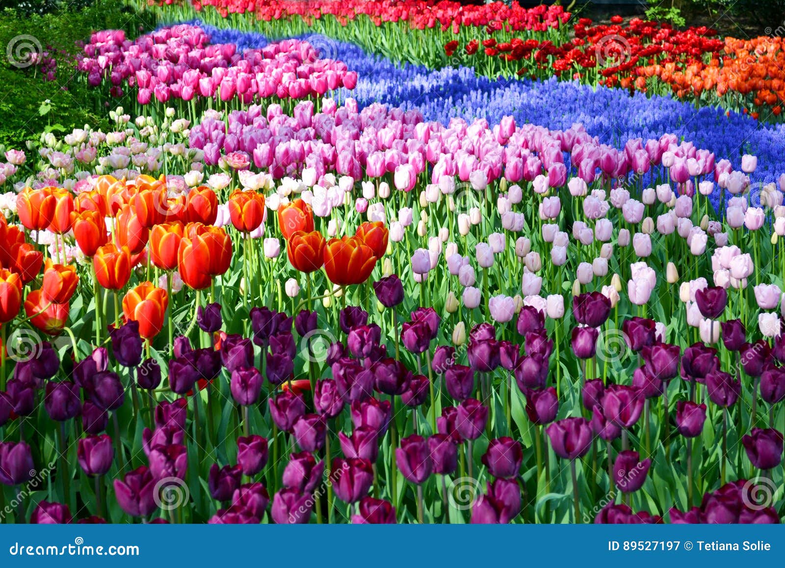 Immagini Stock Grande Quantita Di Tulipani Colorati Fiori Nel Letto Di Fiori Image 83383762