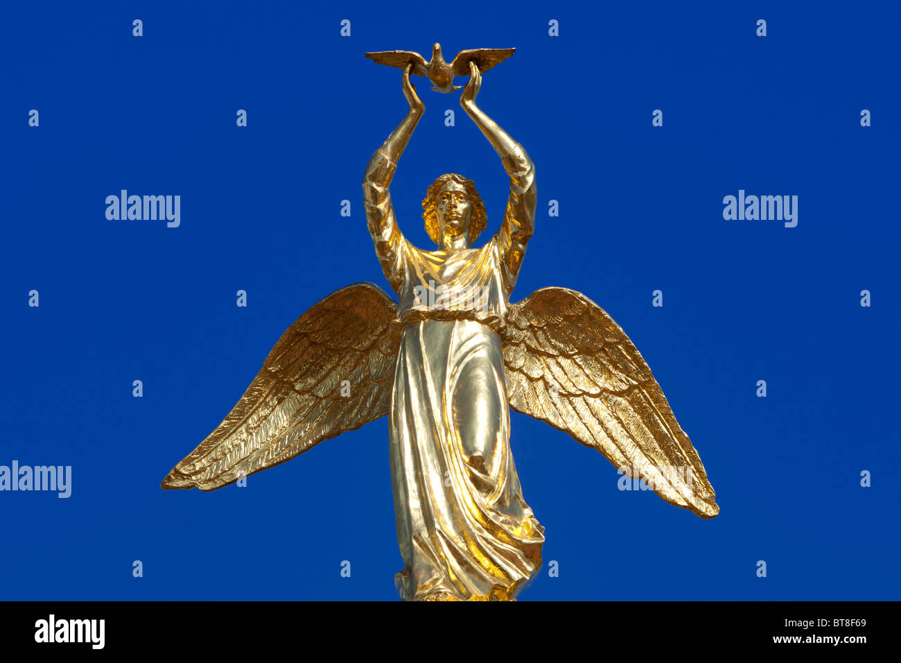 Statua Dorata Di Un Angelo Tenendo Una Colomba Della Pace Presso Il Monumento Caduti Park Parco Muzeon Delle Arti A Mosca Russia Foto Stock Alamy