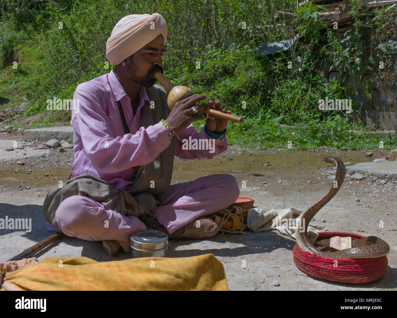 Il Serpente Incantatore Riproduzione Di Flauto E Affascinante Di Un Cobra Dharmsala L India Foto Stock Alamy