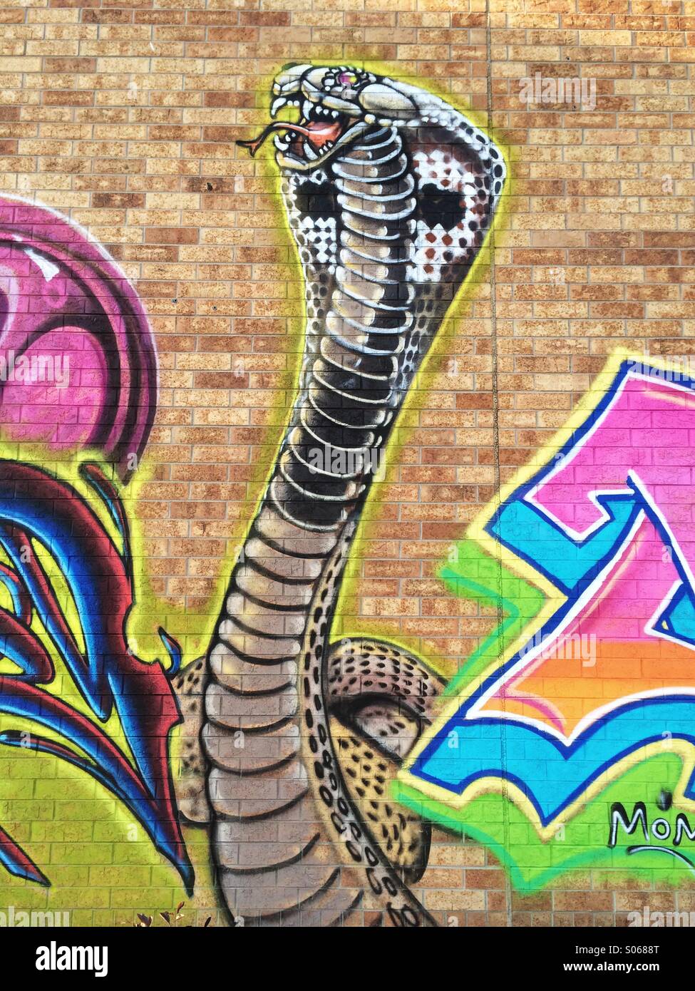 Incredibile Arte Dei Graffiti Di Un Cobra Su Una Parete Di Un Centro Commerciale Che E Stato Abbattuto In Longmont Colorado Foto Stock Alamy