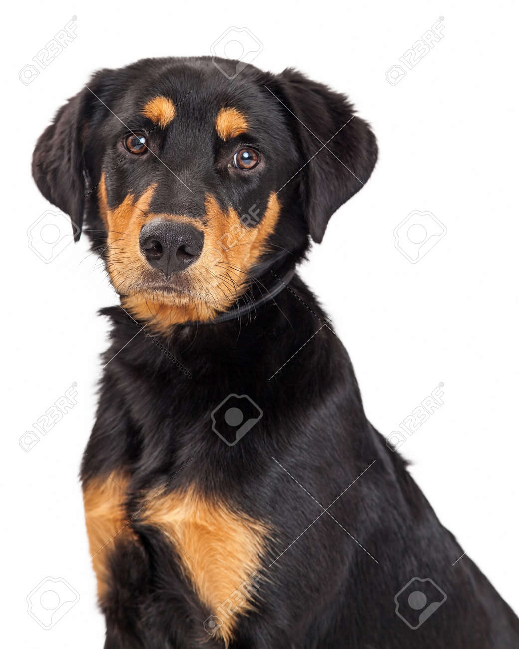 Immagini Stock Ritratto Di Un Rottweiler E Labrador Retriever Razza Mista Otto Mesi Di Eta Cucciolo Simpatico Cane Image 43619921