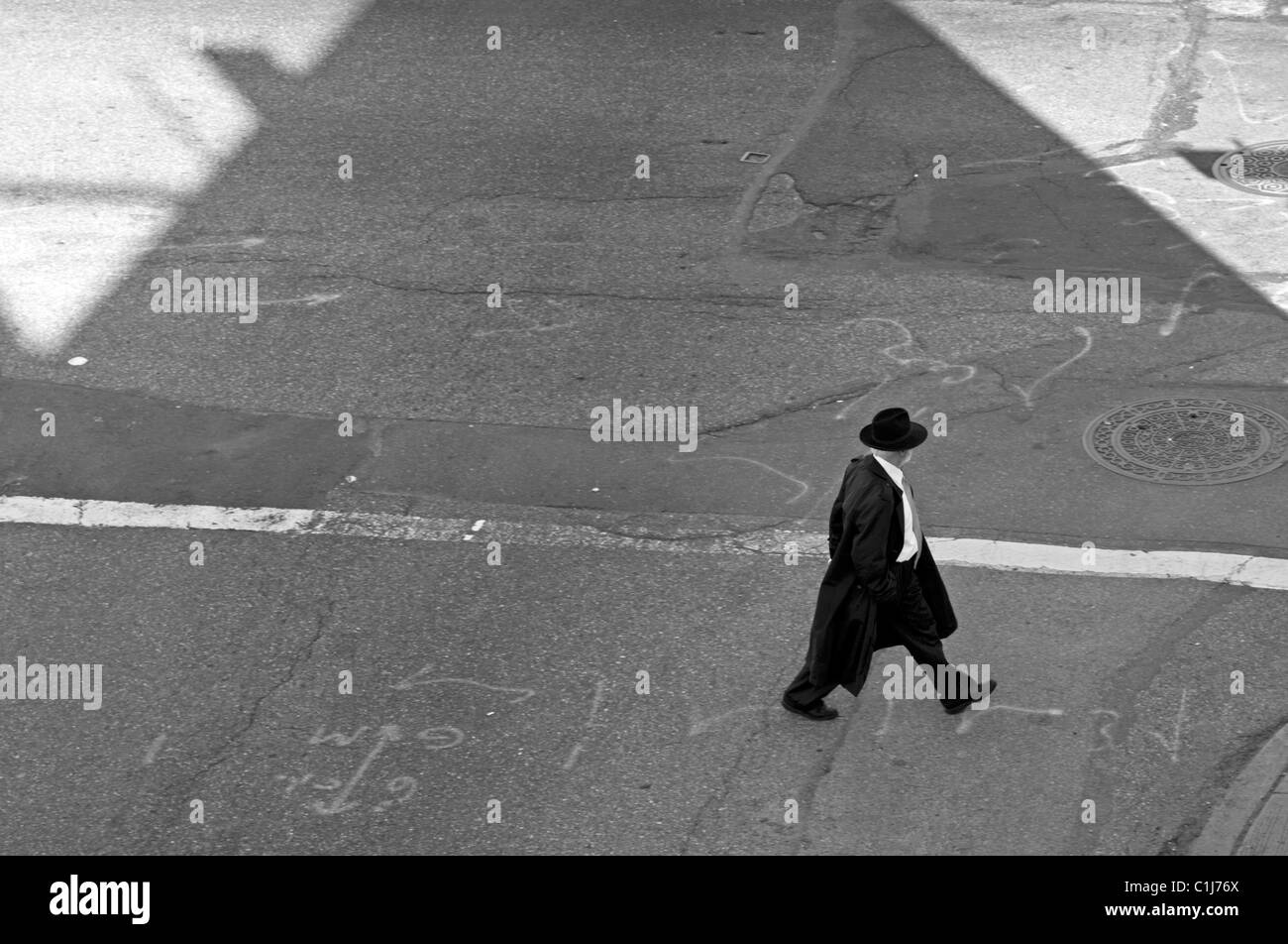 Un Uomo Cammina Da Solo Nella Citta Di New York Nell Ombra Di Un Edificio Foto Stock Alamy