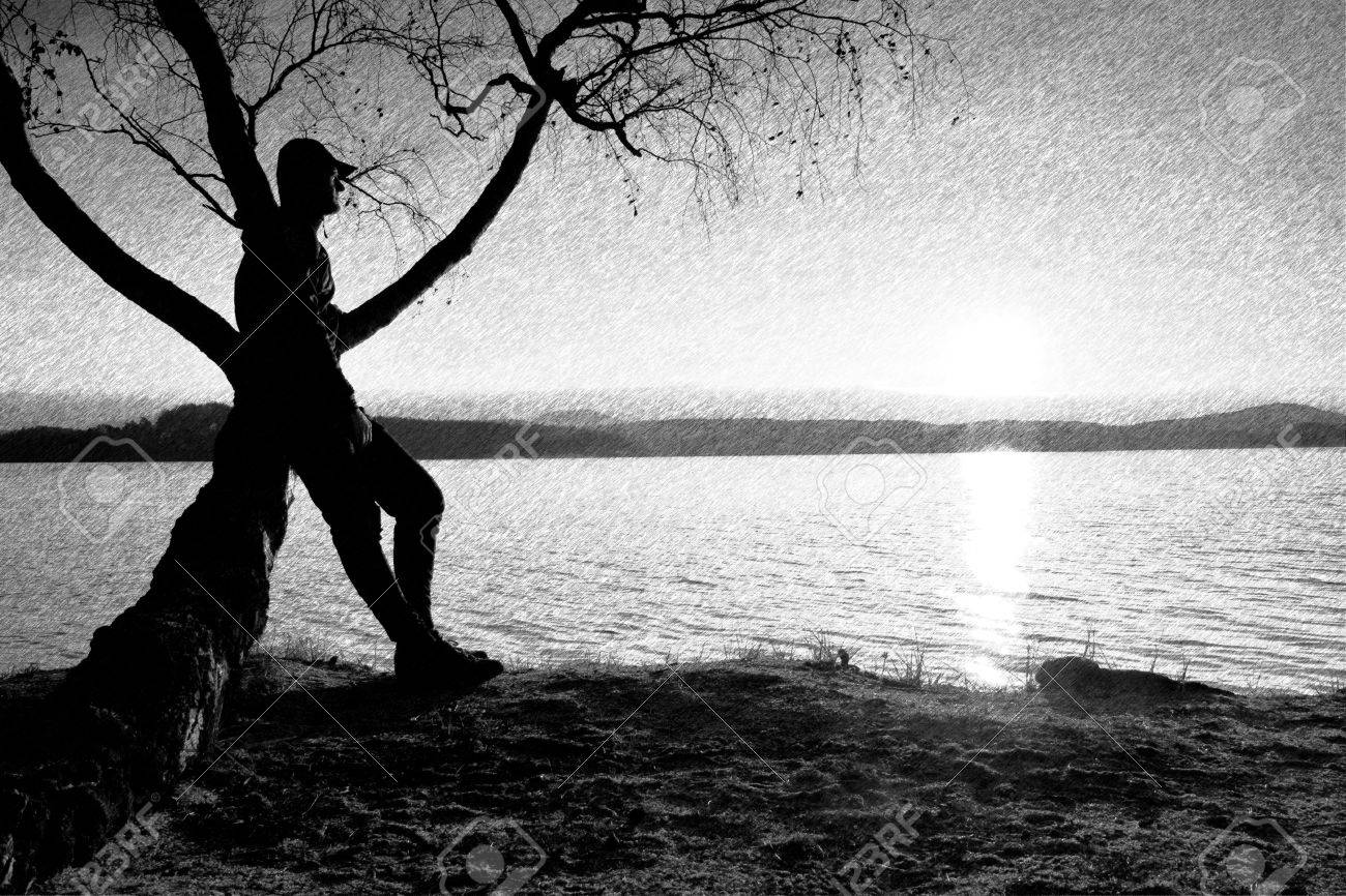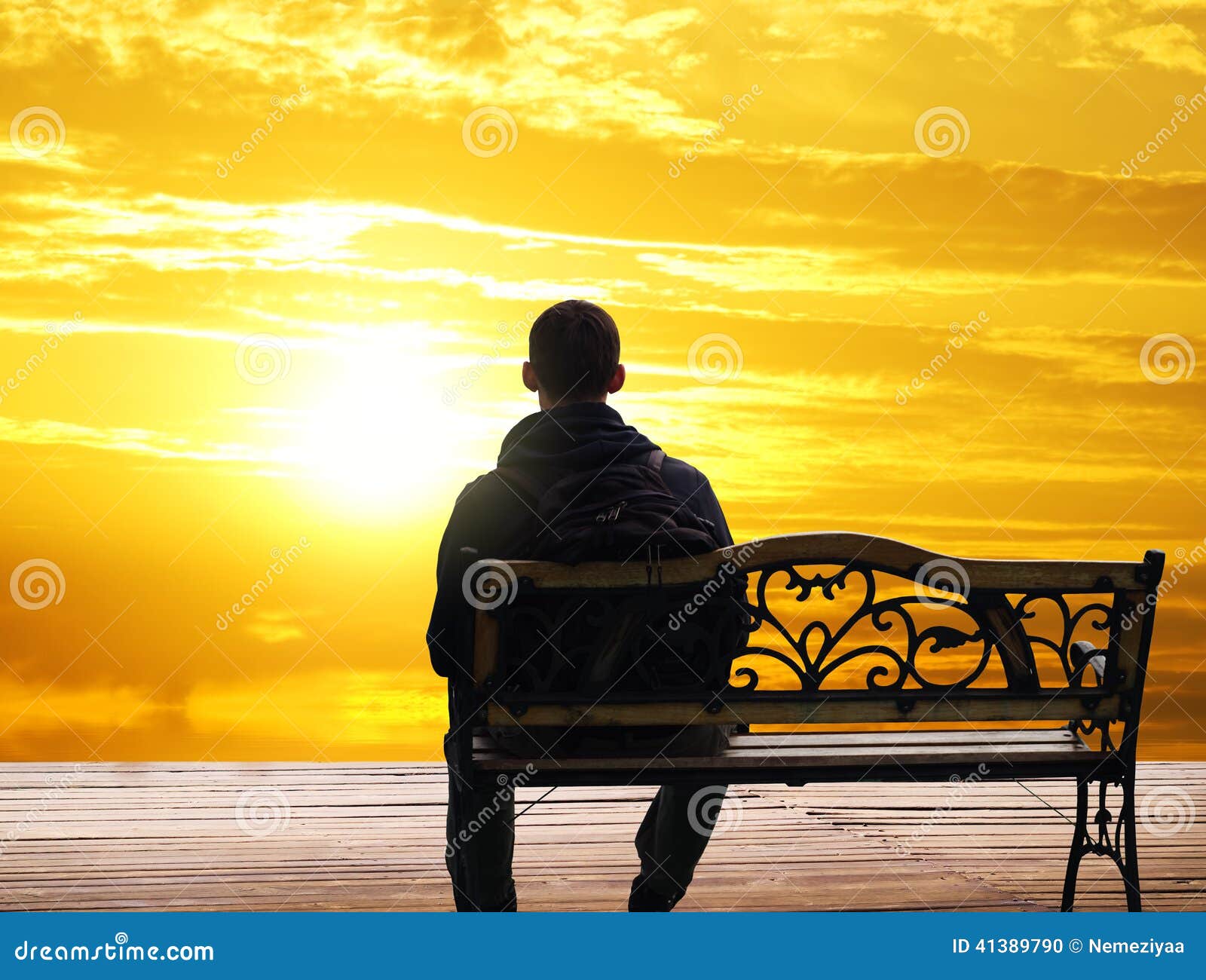 L Uomo Solo Si Siede Su Un Declino Fotografia Stock Immagine Di Riposarsi Calma 41389790