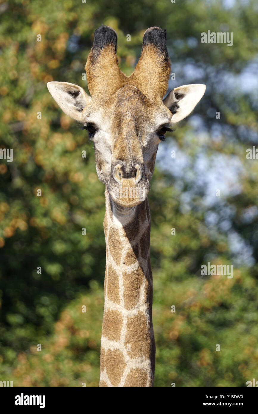 Ritratto Di Una Giraffa Di Testa E Collo Guardando Dritto Nella Telecamera Foto Stock Alamy