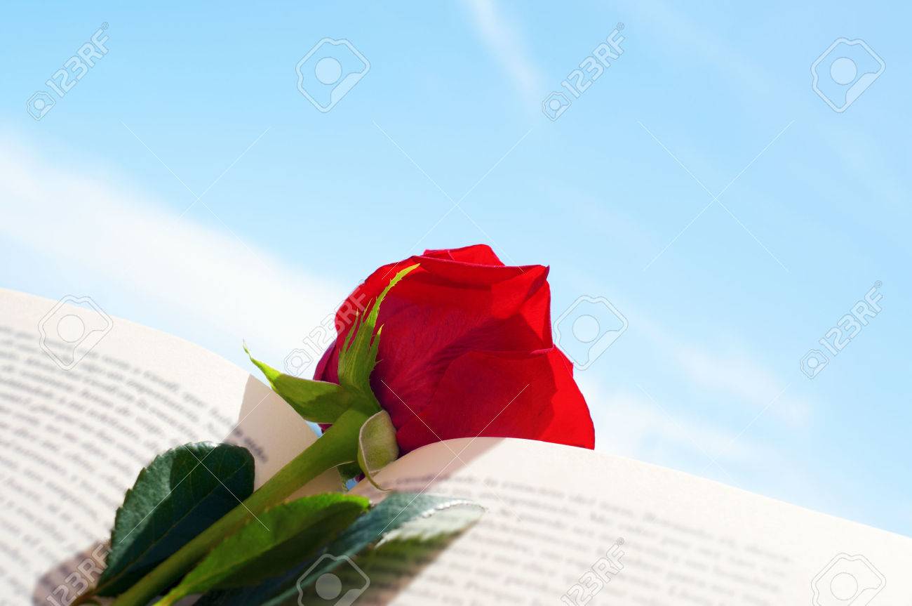 Immagini Stock Primo Piano Di Una Rosa Rossa In Un Libro Aperto Per Sant Jordi Il Giorno Di San Georges Quando E Tradizione Per Dare Rose Rosse E Libri In Catalogna